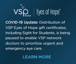 VSP provides free eye care services to qualifying students (18 years and younger) whose families’ income is at or below 200% of the federal poverty level. Services include an eye exam from one of VSP’s participating doctors and glasses, if prescribed. Contact your local Prevent Blindness America affiliate or Prevent Blindness for more details.